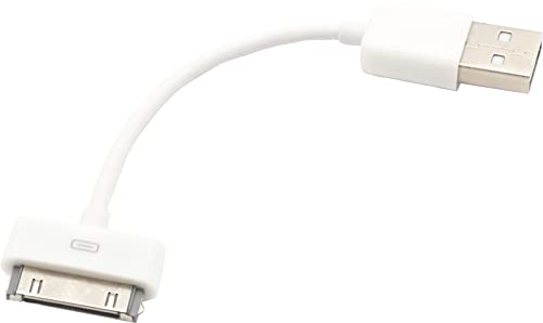 オーディオファンのDockケーブルは、30ピンコネクタを使用し、iPhone4/4S、iPad、iPodに対応。データ通信と充電が可能な短いホワイトケーブルです。