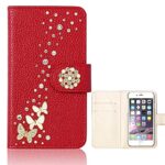 COVERARY Galaxy 5G mobile Wi-Fi SCR01用のポケットWi-Fiケース。全機種対応で、レッドの蝶のデザインにキラキラストーンがアクセント。スタイリッシュで持ち運びに便利。