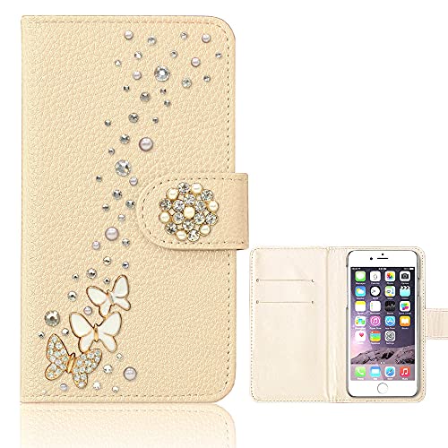 COVERARY Galaxy 5G mobile Wi-Fi SCR01用ポケットWi-Fiケース。ネイビー色で蝶のデザインが施され、ストーンのキラキラが特徴。全機種対応で、サイズがぴったり。
