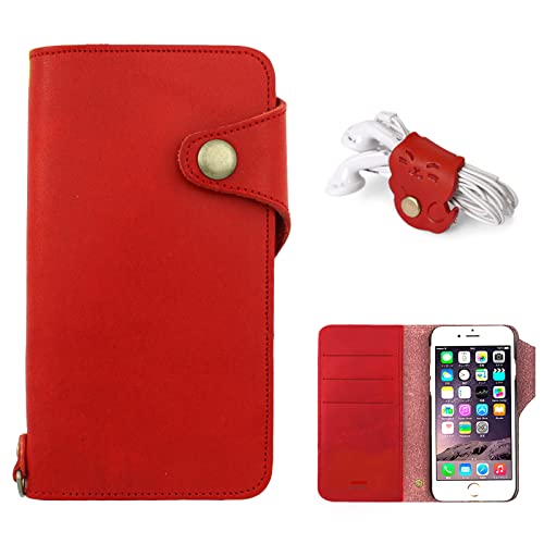 Galaxy 5GモバイルWi-Fi SCR01用手帳型ケース。レッド、本革製で栃木レザーを使用。全機種対応で、ベルトと猫コードクリップ付き。1個入りでスタイリッシュなデザイン。