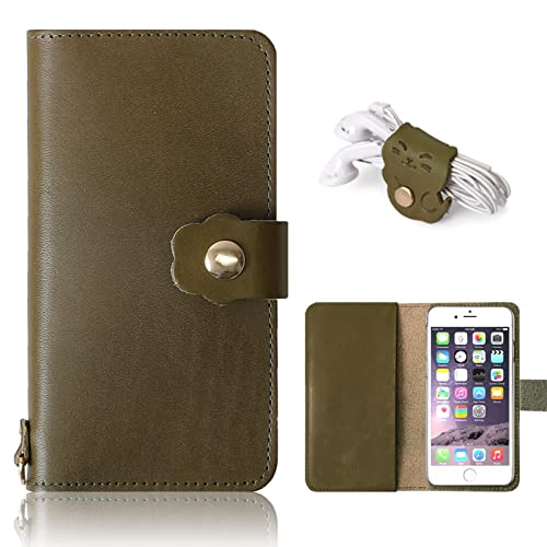 Galaxy 5G mobile Wi-Fi SCR01用手帳型ケース。1個入りでグリーン色。本革使用、栃木レザー製。猫デザインで全機種対応。ベルトとコードクリップ付き。