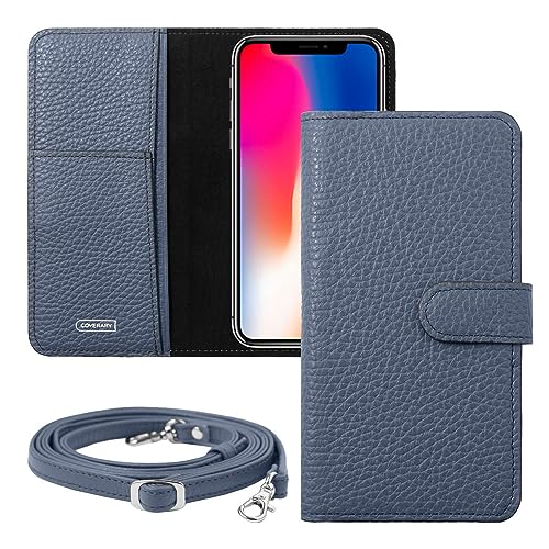 Galaxy 5G mobile Wi-Fi SCR01用の手帳型ケースです。スモークブルーの本革製で、全機種対応。イタリアレザー使用、ポケットやストラップ付き、スタンド機能もあり横置きが可能です。