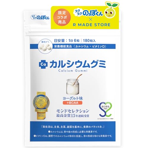 カルシウムグミ「スクスクのっぽくん R」は、子供の成長をサポートするサプリメントです。ビタミンD、亜鉛、アルギニンを配合し、ヨーグルト味で美味しく、1箱30日分。日本製です。