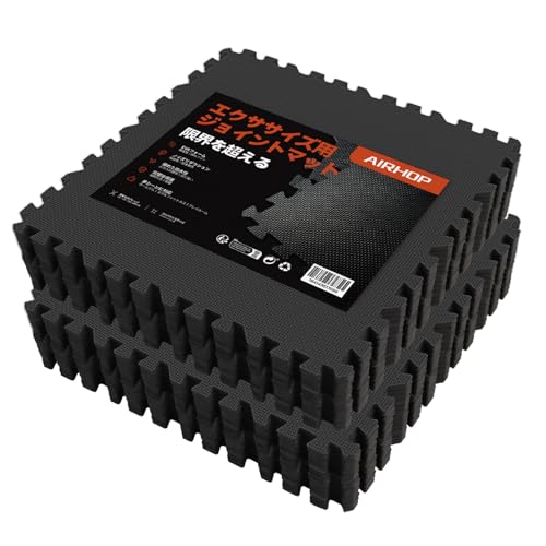 AIRHOPトレーニングジョイントマットはEVA素材製で、サイズは60cm×60cm×1.2cmの6枚セットです。防音・衝撃吸収機能を備え、筋トレやエクササイズに最適で、床をキズから守ります。