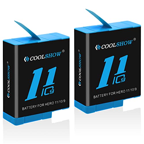 COOLSHOWのGoPro Hero 12/11対応1800mAhバッテリー2個セット。HERO 10/9にも対応。長時間の撮影をサポートし、アウトドアや旅行に最適です。