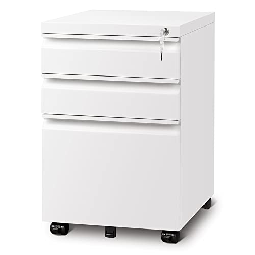 DEVAISE デスクワゴン サイドワゴン キャビネット オフィスワゴン 袖机 キャスター付き 鍵付き 3段オールロック 大容量 A4対応 幅390*奥行480*高さ600mm 丈夫なスチール製 サビ止め塗装 ホワイト 高価買取中