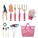 軽量防錆ガーデニングツール10点セット。アルミニウム合金とステンレス製で耐久性抜群。家庭用・プロ向け、収納ケース付き。花壇手入れや植栽作業に最適。母の日や女性への実用的ギフトにおすすめ。