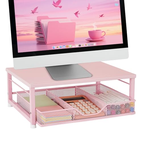 Gugsey スモールピンク ノートパソコンスタンドは、デスク用のモニタースタンドです。引き出し付きで、オフィスや自宅、学校に最適。スタイリッシュなデザインで作業環境を整理します。