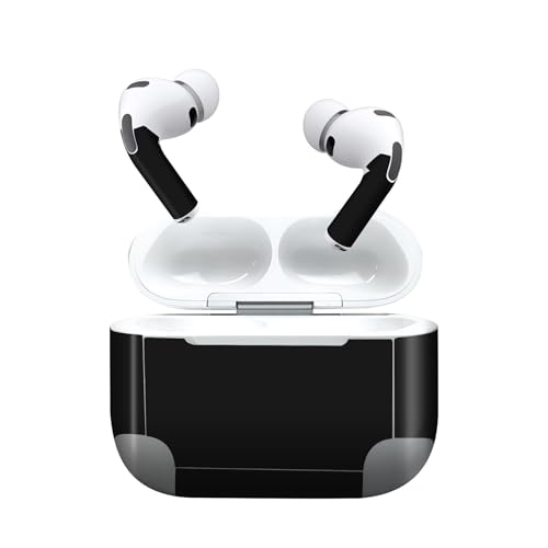 igsticker AirPods Pro 3 用 デザインスキンシール 第3世代 対応 2枚入り。イヤホンカバーのデコレーションアクセサリー。再剥離性シート使用で、シンプルな無地の黒デザインが特徴。