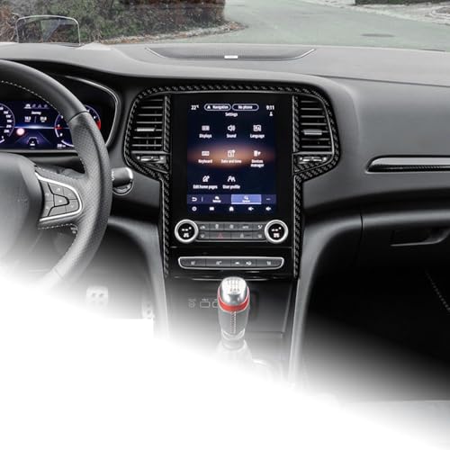 AIRSPEEDのルノー・メガーヌ4代目専用カーボンファイバー内装パーツ。タッチスクリーントリムカバーで傷防止、簡単取付。両面テープ付きでドレスアップに最適。