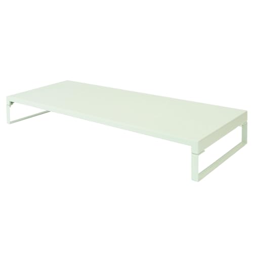 リヒトラブのモニター台は幅59cm、奥行25cm、高さ8cmで、ロータイプ。耐荷重は15kgで、マットグリーン色。デスクのスペースを有効活用し、ゲーミング環境を整えます。