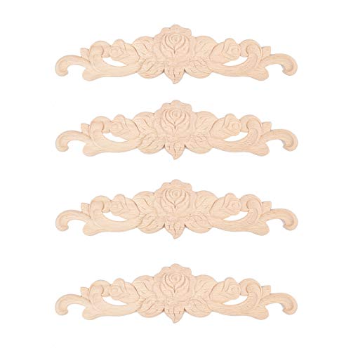 SUPERFINDINGSの木彫りデカールセットは、ヨーロッパスタイルの家具装飾に最適。未塗装で、DIYに最適な4ピースのアップリケ(7x30x0.7cm)です。