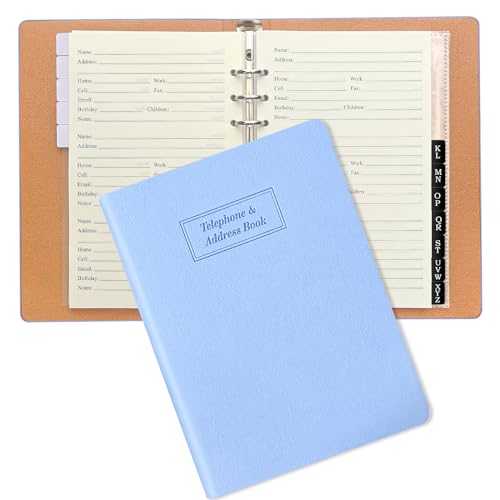 アルファベット順でタブ付きの648エントリが可能なA5サイズの連絡先帳。ブルーPUレザー製のハードカバー、シニア向けのホリデーやオフィス用に最適です。