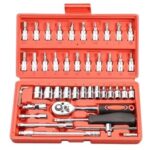 レッドソケットレンチセット46点は、1/4インチサイズの各種ソケットを含み、プラス・マイナス・ヘックス・トルクスに対応。自動車整備やDIY、家具組み立て、バイク・自転車メンテナンスにも最適な工具セットです。