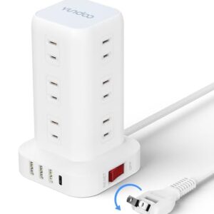 防塵防雷の個別スイッチ付き電源タップ。6口、2Mの延長コードで、ホワイトカラー。雷ガード、過電流・過熱保護、180度スイングプラグ、トラッキング防止機能付き。薄型・コンパクトで家庭用に最適。