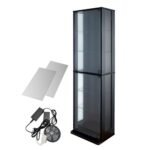 地球家具のコレクションラックDIOは、幅46cm、奥行38cmのミドルハイタイプで、側面がガラス製。背面にミラー、ホワイトLED照明付きで、美しいフィギュアディスプレイが可能。ブラックカラーのスタイリッシュなデザイン。