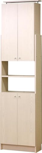 サンゴの突っ張り耐震本棚は、扉付きで壁面収納に最適です。天井につっぱり、大容量を確保しつつ転倒防止機能もあり、リビングやクローゼットにぴったり。おしゃれなホワイトオーク色、幅60、奥行26cmのサイズです。賃貸にも対応。