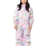 アクレイスのキッズ用スキーウェア(つなぎタイプ)は、サイズ調整が可能なベビー用ワンピースデザインです。スノーボードにも適した120サイズの製品です。