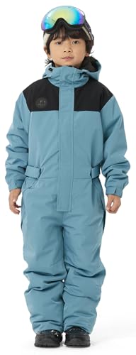 アクレイスのキッズ用スキーウェア、130サイズのつなぎタイプ。ベビー用のワンピースデザインで、スノーボードにも適しています。サイズ調整可能で、スティールブルーのカラーが特徴。