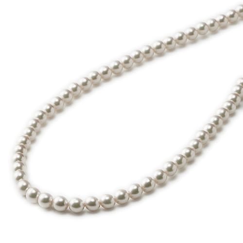 アニバ・オーガニックの人工真珠パールネックレス。本真珠に劣らない輝きで、8mm珠のホワイトカラー、60cmのロングタイプ。結婚式やフォーマルな場面に最適。日本製で匠の技が光る一品。