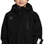 [アクレイス] スキーウェアはキッズ用のスノーボードジャケットです。男の子向けで、サイズは120cmから160cmの5種類展開。耐久性と防寒性に優れ、冬のアクティビティに最適です。