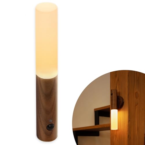 Ramaの木製人感センサーライトは、充電式でLEDの暖色光を放ち、コンパクトな北欧デザイン。マグネット付きで壁に設置可能、寝室やリビングにぴったりの間接照明です。(ウォルナット色)