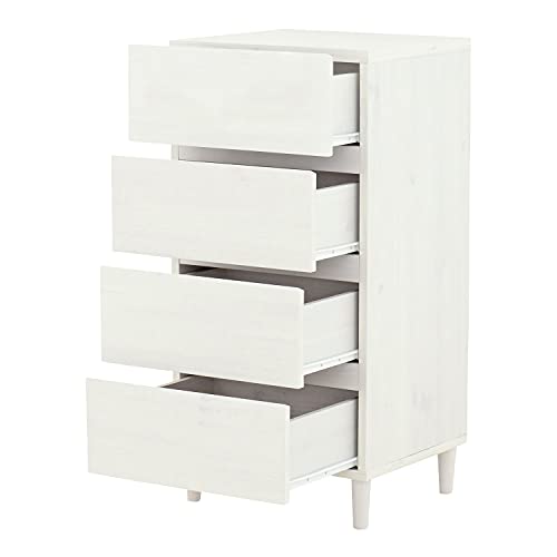 北欧デザインの4段収納チェスト。幅45cmのコンパクトな木製で、リビングにもぴったり。引き出し式でシンプルかつおしゃれなホワイト仕上げ。