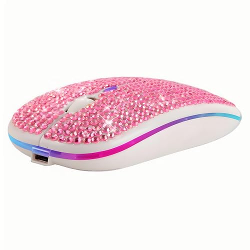 キラキララインストーンの無線マウス。Bluetoothと2.4G接続、Type-C充電式。三段階DPI調整、静音設計。ノートPCやスマホ、Windows、MAC、Android対応。ファッション性も高く、ピンク色が可愛い。