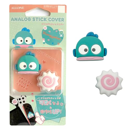 アローンのサンリオキャラクターズハンギョドンのアナログスティックカバーは、Joy-ConやProコン、PS4・PS5コントローラーに対応。簡単取り付けで傷や汚れからスティックを保護。サイズは2.8×0.9×2.4cmで、かわいいデザインがSNS映えします。