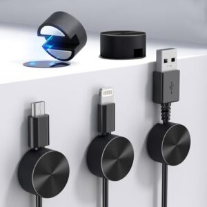 Maveek 超強磁力 マグネットケーブルホルダー 新型 磁 力 ホルダー ケーブルクリップ ケーブル管理システム 落下 紛失 防止 メタルプレート付き 両面テープ 多用途 粘着可能 工具不用 ケーブル固定 配線 管理 まとめ 卓上 デスク 机 壁 キッチン 車内 台所 USBケーブル lanケーブル type-cケーブルなど 固定 整理 5個入リ メタリックブラック