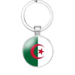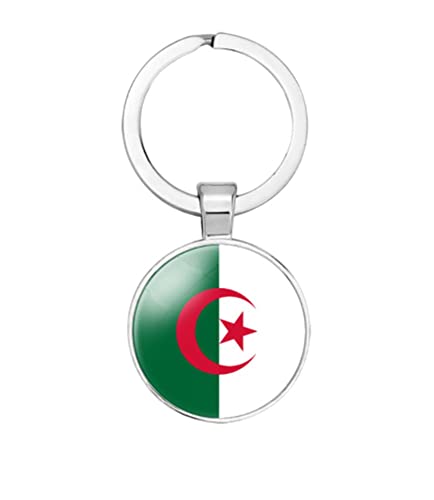 アルジェリア国旗デザインのキーホルダー。サイズはワンサイズ、素材はステンレススチールと象嵌ガラス。男性・女性問わずギフトに最適です。