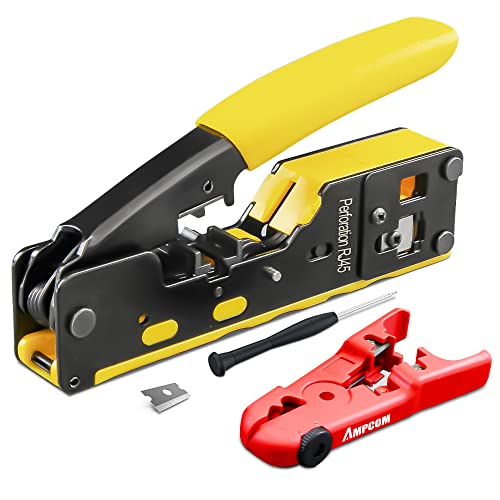lan かしめ 工具 貫通 RJ45/RJ11、8P/6Pのコネクタ全種類対応 lan 圧着工具【AMPCOM】lan自作 かしめ工具 圧着 貫通 被覆剝き 切断 シールドコネクタ STP 対応の製品情報