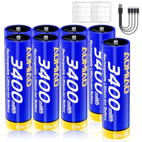 AOMIAOの充電式単三電池8個セットは、2200mAhの高容量で約2000回再利用可能。急速充電対応のTYPE-Cケーブル付きで、環境に優しい選択です。