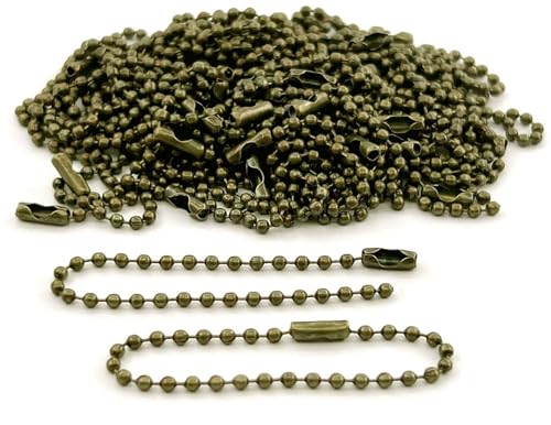 50本入りの12cmボールチェーン。ボール径は2.3mmで、コネクター付き。キーチェーンやストラップ、キーホルダーのパーツとして使用可能。金具は真鍮古美仕上げ。