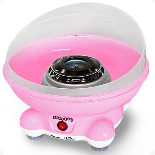 eモンズ わたあめメーカー【わたがしアメイジング】は、家庭で簡単に綿菓子を作れるクッキングトイです。ピンク色のデザインで、飴玉1つで名人スティックと専用バッグ付き。