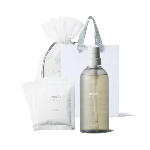 【Amazon.co.jp限定】ギフトセットmeeth PLUS。ハンドボディケアウォッシュ500mLとシルキーバスソルト50g×3個がセット。ギフトバック&ショップバック付で、プレゼントに最適です。