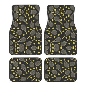 おもしろいテニスラケットとテニスボールの車用フットマット 4点セット – SUV、トラック、セダン用のフロント&リアユニバーサルカーフロアマット