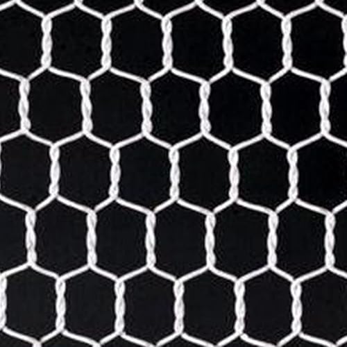 ビニール亀甲金網 ホワイト 10mmは、455mm幅・30m長の耐久性に優れた金網です。主に庭や施設の仕切り、ペットの安全対策に最適で、UVカット加工により色あせを防ぎます。