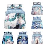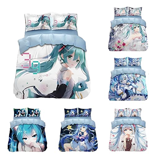 ZJHVI初音ミク布団カバー4点セット。柔らかく肌触り良好、通気性あり、抗菌防臭。丸洗いOK、春夏兼用。サイズ: 9,150*200cm。