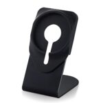 エレコムのスマホスタンドAMS-DSCHALBKは、iPhone12シリーズに対応したアルミニウム製で、MagSafe充電器を使用できる設計。スタイリッシュなブラックカラーで、デスク環境をおしゃれに演出します。