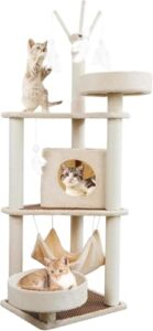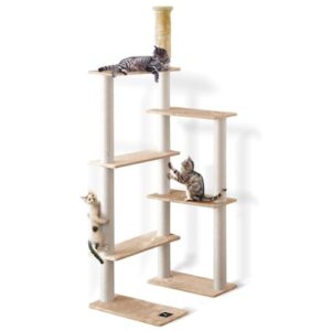 PETEPELA(ペテペラ)キャットタワー 大型猫用 木製 スリム 猫タワー 省スペース 多頭飼い 据え置き 木目調 おしゃれ 人気 隠れ家 見晴台 爪研ぎポール 滑り止めマット シニア猫 子猫 登りやすい 安定 運動不足解消 – 143cmの高価買取