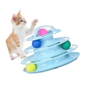 猫 おもちゃ ボール回転タワー 4層回転くるくる タワー 素晴らしい猫じゃらしが付き 猫用 円盤 遊ぶ盤 遊び好き天性満足 運動不足解消 ブルー