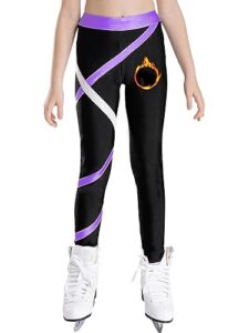 [Raenseen] 子供用 女の子向け アイスフィギュアスケート練習用 長ズボン フリース裏張り 暖かいタイツ 体操用レギンス ヨガタイツ ライトパープル 9-10歳