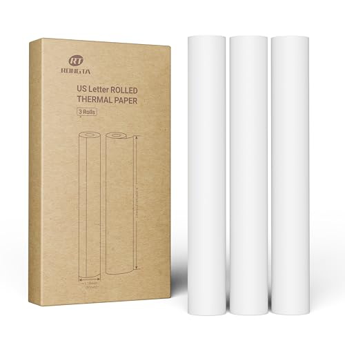 サーマルプリンター用紙 8.5 x 11インチ、USレターサイズ1枚、ほとんどのサーマルポータブルプリンターに対応の高品質用紙。3ロール入り。