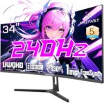 Amzfast 34インチ ゲーミングモニターは、240Hzのリフレッシュレート、UWQHD解像度、1ms応答時間を備え、高い色域とコントラストを提供します。HDR400、Adaptive Sync機能、PIP/PBP、フリッカー防止、ブルーライト低減を搭載。HDMI 2.1×2、DP 1.4×2接続可能で、5年保証付き。