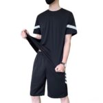 Sillictorのメンズスポーツウェア上下セット。半袖Tシャツとハーフパンツが組み合わさったトレーニング用ジャージ。通気速乾機能とUVカットが特長で、日本サイズSで品質良好。
