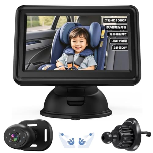 Antion 2025革新型 車用ベビーモニター 4.3インチ 見守りモニター AHD1080P画質 録画機能対応 自動ナイトビジョン 暗視性能強化 車内監視カメラ 150°広角 USB給電 ケーブル一本配線 日本語説明書 出産祝いギフト 育児グッズ 高価買取中