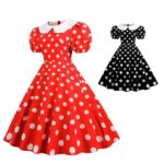 【Sai彩】ミニー風の大人用ワンピースドレス。アンティークスタイルで、女性向けコスプレや仮装に最適。ハロウィンやクリスマスの衣装としても使え、インスタ映えするデザイン。カラーは赤、サイズはL。