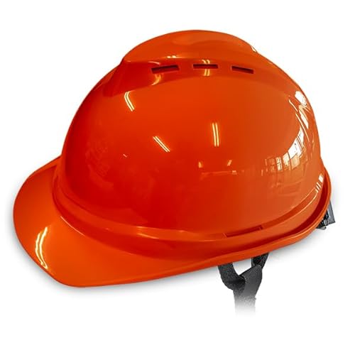 作業用ヘルメットA型は、プッシュボタン式のサイズ調整機能を搭載した安全帽です。防災ヘルメットとしても活用でき、通気口があり、汗をかいても快適に使用できます。カラーはオレンジです。