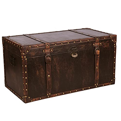 Aoakuaの鍵付き超特大トランク型収納ボックスは、木製の大型トランクで、アンティークなデザインが魅力。サイズはW70cmで、宝物をたっぷり収納可能な品です。